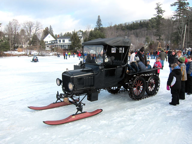 I had forgotten that there were also going to be a number of Snowmobiles on the ice, and fortunately I turned around and saw the five Model T Ford Snowmobile conversions that were there.