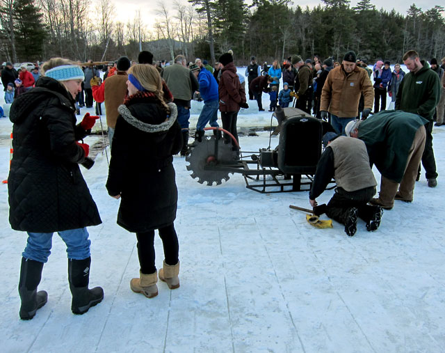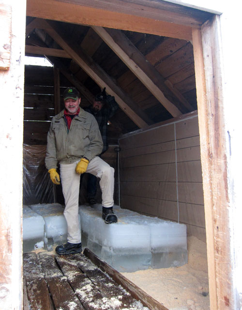 the bottom layer of blocks in the ice house was still from last year’s harvest. They were laying two levels of blocks, and then a layer of sawdust.
