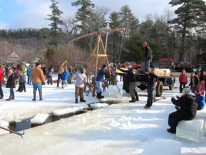 I had so much fun today — and I have been looking forward to this day since August 20th – six months ago. You can read my post about my finally getting to Muster Field Farm that day – but you also have to learn about Muster Field Farm in Sutton by clicking on this second link. Of course, I have the book about the history of the farm, but when I was there in August I learned about ICE DAY — and finally it was today. AND WORTH THE WAIT. When I confirmed the event by phone I was told that this was the warmest time ever for the harvest — and it was a perfect day.