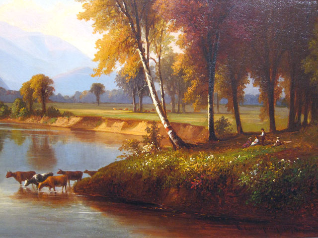 Two paintings really caught my eye. This first is “A View on the Saco” by Godfrey N. Frankenstein done in 1847. Similar to some scenes I will eventually show you of my train ride up the Saco. The railroad’s trestle I crossed is named for Frankenstein.