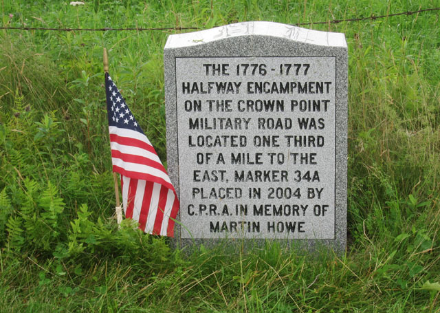 Next we went north of the old Turnpike and Shunpike to sections of the old Crown Point Military Road. I explored other sections of the Crown Point Road in August 2013 with a group assembling at the Hubbarton Battlefield. Below is a marker of an encampment spot. Several thousand soldiers with their cattle etc. would camp at this spot on the way from the Fort at Number 4 to Crown Point, or Fort Ticonderoga – depending upon which war (I know, but something for you to look up)