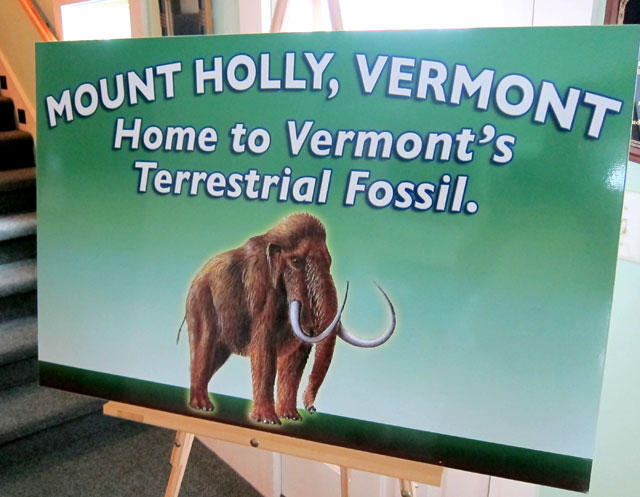 Dennis pointed out an excavated area with the tracks passing through. “It was swampy, so they dug down 11 feet to bedrock to lay the tracks,” he explained. But in so doing, the construction crew discovered the tusk and tooth of a woolly mammoth (more later, and check this link now). As I have written about, the first train from Boston to Bellows Falls and Walpole arrived on January 1, 1849. I really hadn’t thought of what happened next, but, of course, several sections of track were being constructed at once. On December 18, 1849 at this highpoint, the Summit, with the tracks now connected, trains with dignitaries from both Boston and Burlington met to drive the last spike. “Water from Lake Champlain and Boston Harbor was mingled in front of the cowcatchers, and all celebrated with rum and local hard cider.” Think, Erie Canal, “Wedding of the Waters.” More history in the middle of nowhere that I needed to share.
