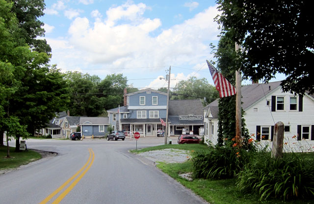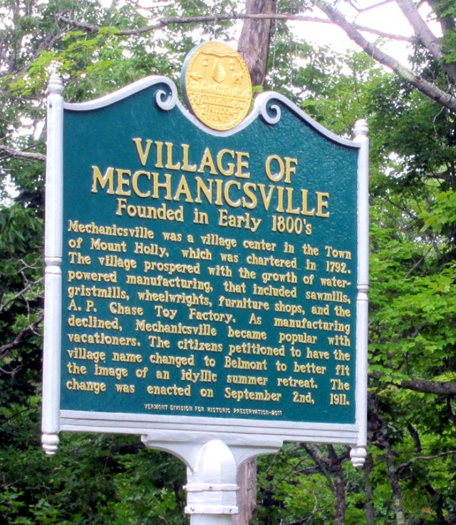 Of the four villages in Mount Holly, Belmont is the most “formally” laid out with a common, churches (one now the library and community center) and the Belmont General Store, “serving the community since 1843”