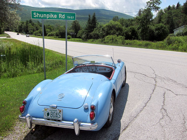 When BLACK BEAUTY and I went to the Vermont Marble Museum a few weeks ago we saw a couple signs on Route 103 saying Shunpike Road, and I was surprisingly too focused to not stop and “shunpike” – I knew I would be back. About 15 minutes from Ludlow (think Okemo) I turned left on Healdville Road (another Mount Holly village), but first stopped for BLUE BELLE’s portrait for the day.