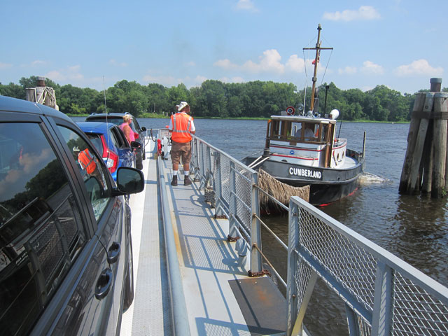 I pulled up just as the ferry was beginning to depart, but they stopped, reopened the gate, and waved me aboard.