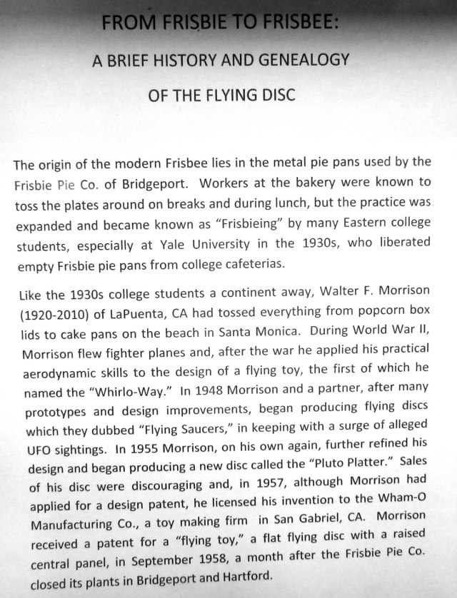 - Read this on the history of Frisbees. I fondly remember my Green Pluto Platter I had in the mid-1950s following seeing one at YMCA Day Camp.