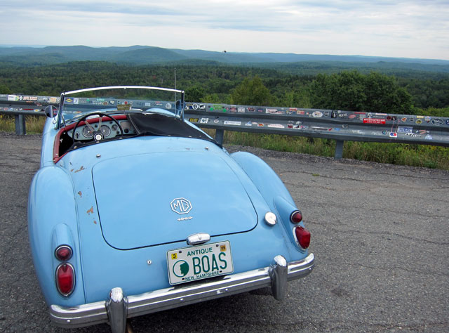 and the view poor BLUE BELLE had to endure during my wonderful visit on Hogback Mountain. The guardrail is plastered with stickers from all over.