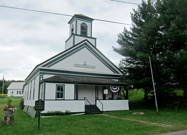 The building you can see over BB2’s bonnet is Green Mountain Hall, built in 1861 as a Universalist Church. The church disbanding the end of the 19th century, the building became the Green Mountain Club, and when that association disbanded in 1909, they turned ownership to the town. Used for Town Meetings, plays, dances, in 1973 the building was leased to the Whitingham Historical Society.