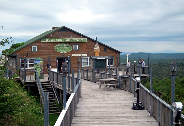 and the view poor BLUE BELLE had to endure during my wonderful visit on Hogback Mountain. The guardrail is plastered with stickers from all over.