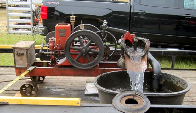 Below is something new to me – a 1912 1 1/2 Horse Power Side Shaft Domestic (brand) Engine with a Goulds Mud Sucker Pump to pump water out of ditches.