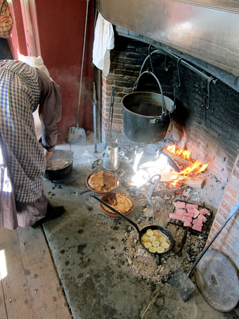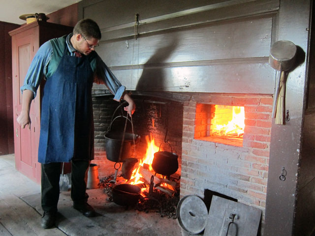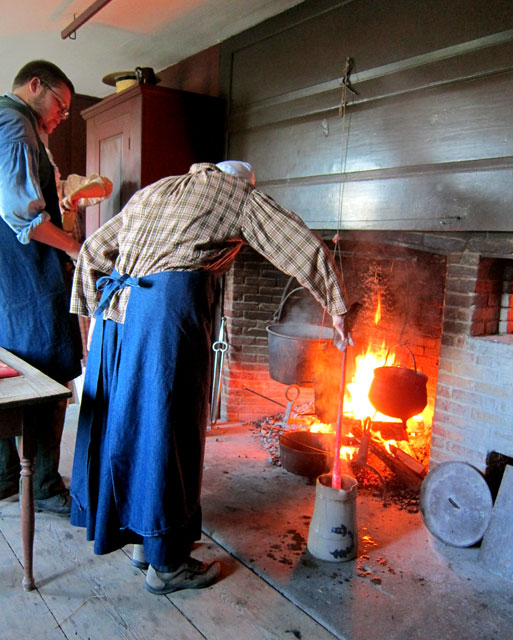 We received a brief introduction to the house, made our beds (which have straw and down mattresses). I really did not understand the fact that the afternoon would be spent with a craft. I choose the Tin Shop, and expected to just observe as the tinsmiths worked and chatted with visitors. Was I wrong, I was put to work making sconces. And, then I was overwhelmed to learned that the two sconces I made I was getting to keep (see images at end).