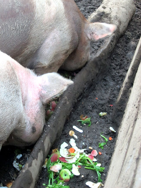 while things were cooking, we went up to the Freeman Farm to feed the chickens, and the scraps to the pigs.