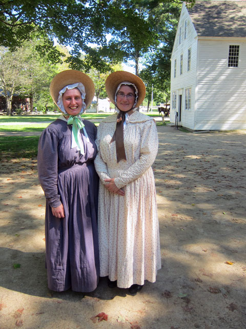 I couldn’t leave, and enjoyed OSV until about 2:30 sitting on benches, talking with interpreters, and visiting the Tin Shop, Print Shop, Country Store, and more. Realizing I had not gotten a picture of Susan and Ruth, fortunately I saw them coming down the path. Here they are with the country store from Dumerston, Vermont (across the river from me) in the background.