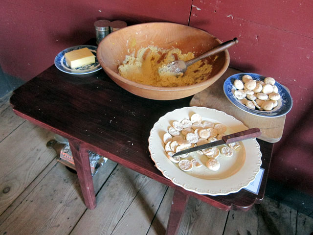I tried to go to this experience in the Spring, but the session I choose was cancelled. The program is designed for six participants, and as I learned, three are needed. Laura, her daughter, coming from State College, Pennsylvania, and I were the only three signed up – and thanked each other for doing so. Meeting at the visitor center, our interpreters, Ruth and Susan, met us and took us to costuming to be outfitted for 1838. OSV, as a living history museum, unlike others, focuses on one time period – 1838. A fantastic approach, and made even more special by the interpreters on the grounds. This is a working town and surrounding farm side, and mill area. In my previous visits I realized everyone was a family, and that only happens when management does its job in treating people well, training, and just comradeship. Following costuming we headed to our home for the next 22 hours – the Bixby House.