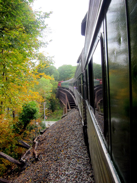 I am glad I took the trip, got to again see the “backside” to the road up to the notch, but I must confess the scenery is hidden by the trees surrounding the tracks, and “nothing to write home about.” It was the beginning of the season, and the dining car staff and food also was nothing exciting, and somehow eating on formica table tops is not my forte, particularly since I have had fine china and linen on Via Rail Canada – you get to expect a certain norm.