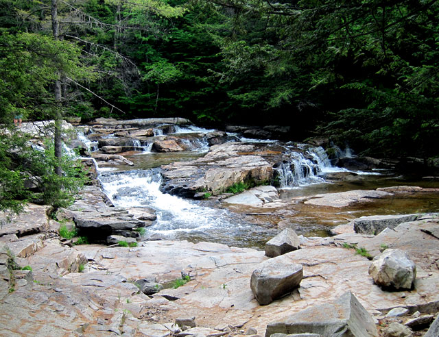 Heading west from North Conway I first stopped at the visitor center, and the Ranger suggested stops. There is wonderful scenery along this route and interesting history about early life in the area that you should take in. Life was a struggle in the mountains, and still is as you can see the trees to the right working to “hang-on.”