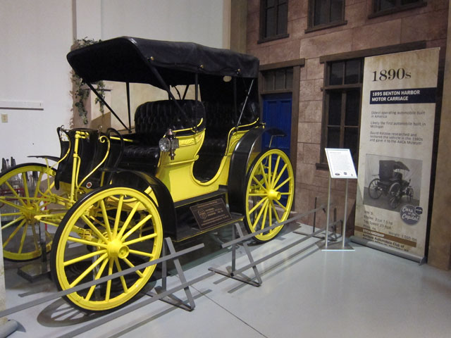 Charles Duryea and his brother Frank are credited with building the first gasoline powered auto in the US demonstrating it September 21, 1893, in Springfield, Massachusetts, But in the museum is the 1896 Chicago Benton Harbor, now considered to be the first vehicle in America built from scratch as an automobile as opposed to construction on a modified horse-drawn carriage.