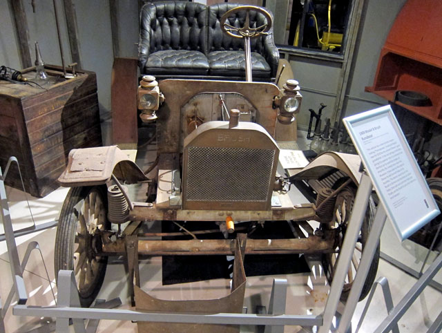 In a reconstructed blacksmith shop (the early automobile repair shop) is this original BRUSH – the only car made with a wooden front axle. I think my Dad had one once. I love original condition.