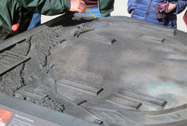and, there is a bronze plaque you can touch to feel the destructive contours Note the swath of trees blown over.