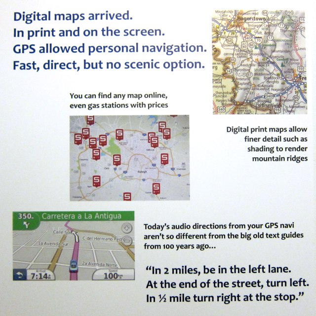 I love old-fashioned paper maps, and the frustration opening and closing them. Here is the exhibit on maps that I wanted to share, and you can click on the gallery for larger readable images.