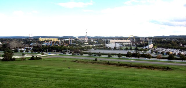 Next I headed over to the relocated and expanded CHOCOLATE WORLD to buy my ticket for a “Trolley Tour” of Hershey. Again, glad I did because I like to learn the “lay of the land” and how the roads are all connected. Here is a view looking from a Hershey School campus looking at downtown, the stadium and expanded amusement park (you have to learn how Milton Hershey built his atypical “company town”), and the now paved fields that I loved to explore cars and car parts on.