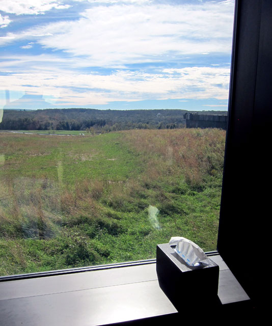 at the end of the hall you can look out at the crash site, now signified by a 17 ton boulder. Probably the only National Memorial with tissue boxes strategically placed. I almost pulled one out.