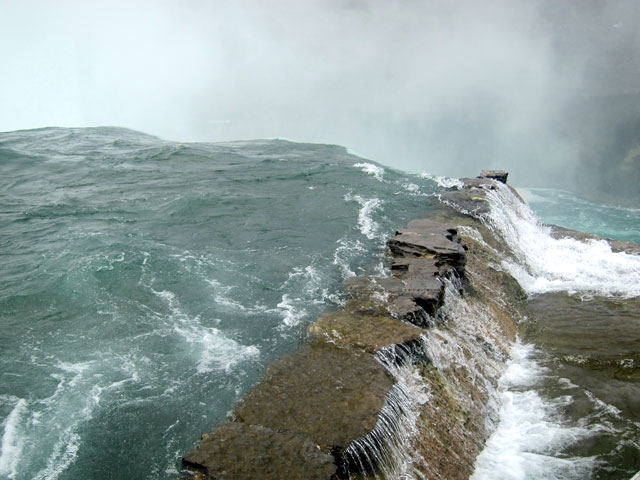 The outcrop of land under the bridge to Canada is where it has been determined Niagara Falls started about 10,000 (?) years ago, but have moved 7 miles to the south.