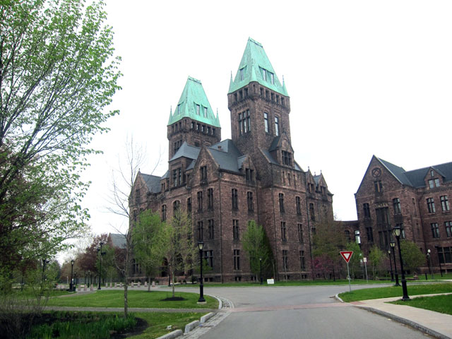 I was going to leave first thing Friday morning for Rochester doing Erie Canal things on the way, but I had discovered that the hours of an exhibit I really, really wanted to see were wrong, and I could only see SPIRIT OF THE CITY exhibit of the Buffalo Historical Society on this day, the third Friday of the month (I would have pushed for “by appointment”). On the way (blocks away from my B&B) I had time to tour the Richardson Olmsted Campus – a premier historic preservation project. The complex was built 145 years ago for enlightened treatment for people with mental illness – an asylum. Another reason to visit Buffalo. Driving up to the front, I remembered my Road Scholar bus tour of the city stopped at this point.