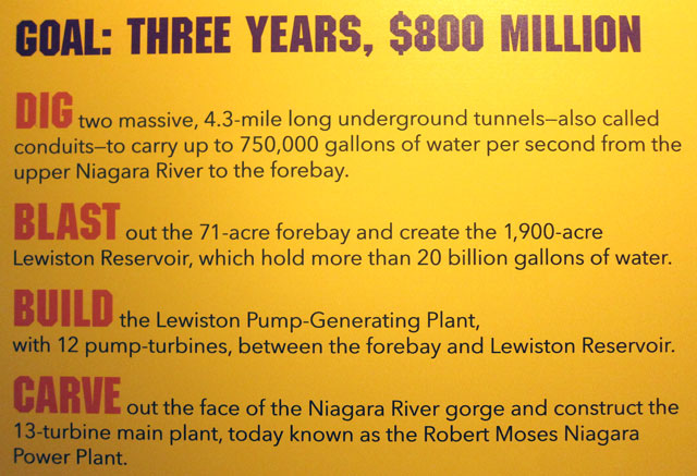 The website is a tad confusing, but this totally free experience is worth several hours of your time. The power of water on the Niagara River has generated electricity since the late 19th century. This facility, built in three years, was completed in 1961. Robert Moses oversaw amazing projects, such as the 1964 NY World’s Fair, so why do construction projects take forever today?