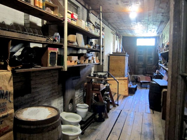 Inside – WOW. Living quarters above, unchanged with three generations. The senior shop owner in 1940 said to his daughter, “I am done, the store is yours,” and he locked up. The store never opened again, and stayed untouched until after her death in the late 1970s. It was in the early 80s (if I recall from the private tour) the society acquired the property. I would imagine the shelves have been restaged, but done so with items that have always been in this building. – Unbelievable.