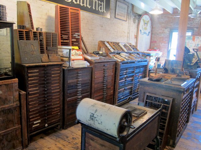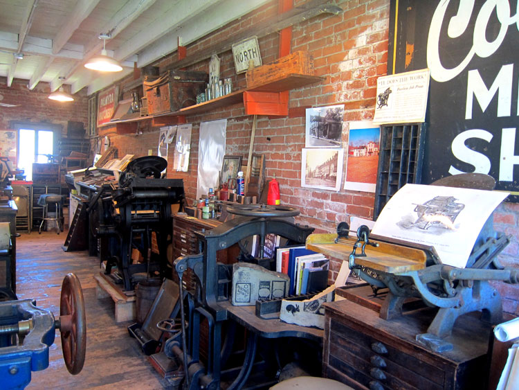 You are toured by a docent from building to building. The main building, an old hotel, you can roam the exhibits, each room devoted to another aspect of local history. I have not included images of the original canal office where you bought tickets, but of interest, the mules were kept and fed in the basement with inclined walkways originally there for entrance and egress. I really enjoyed the print shop – one of the most extensive letterpress collections I have seen in one place.