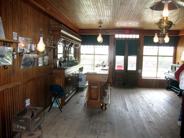 you can see to the right side the blacksmith shop which was relocated to the spot with the help of old photos. Original items, including the bar, were found in the basement. Here is the tavern room still a work in progress – but gorgeous.