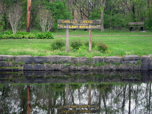 Back on the Thruway, I figured I should at least see the Camillus park, and the aqueduct that I was encouraged to see. Getting there, I saw this sign that the park is essentially the mid-point of the Erie Canal.