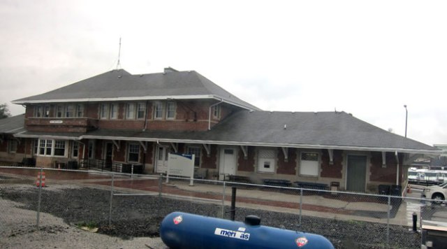In the rural areas the train stations are old and varied vintage architecture. Here is Waterloo, Ohio.
