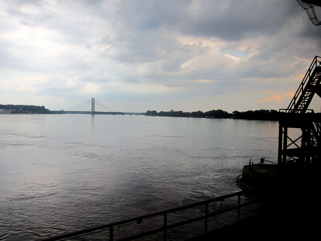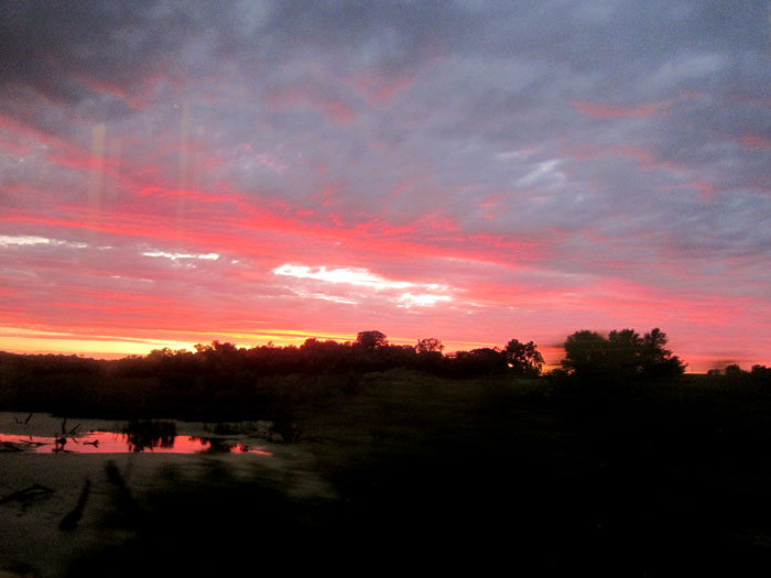 At 5:45 PM (about 20 minutes late) we crossed the Mississippi River, entering Burlington, Iowa. Most bridges had iron super structures, thus hard to capture an image of the river. And, I have been meaning to say, all pictures were hard to take – you travel up to 79 MPH, when you see a picture op, you are past before you realize it, and then there is the window glare, and sadly dirt on the windows.