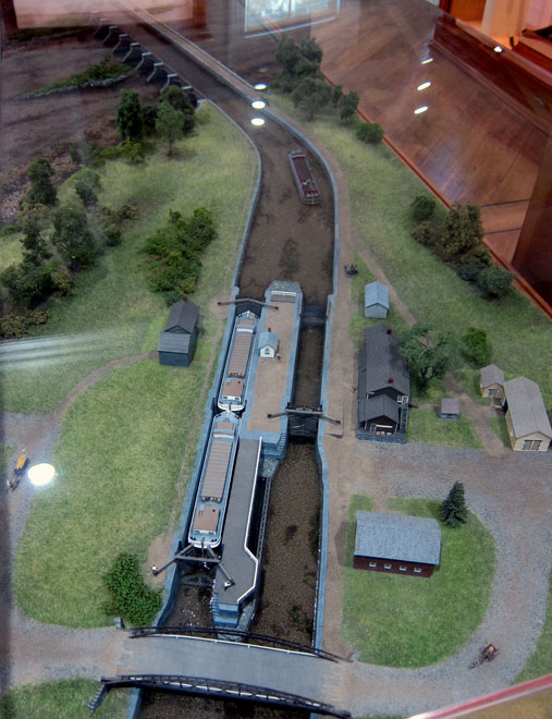 this model in the museum shows where the original and enlarged canals were co-located, and can still be seen. Seen that is, if you remember. I was so excited to get from the Barge Canal to the old Canal store I forgot the short hike to this spot – well, next time.