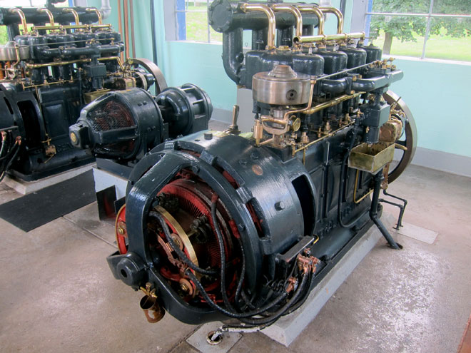 Another proud young lock keeper going off duty, wanted to show off the old power plant. Instead of water driven turbines, this internal combustion engine (with a back up) drove the electric motor in the middle.