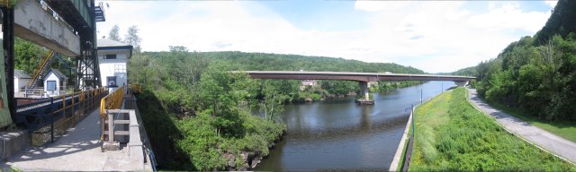how about a panorama from atop the lock? Click on the below for a full screen view looking back at the Route 169 bridge over the Mohawk River.