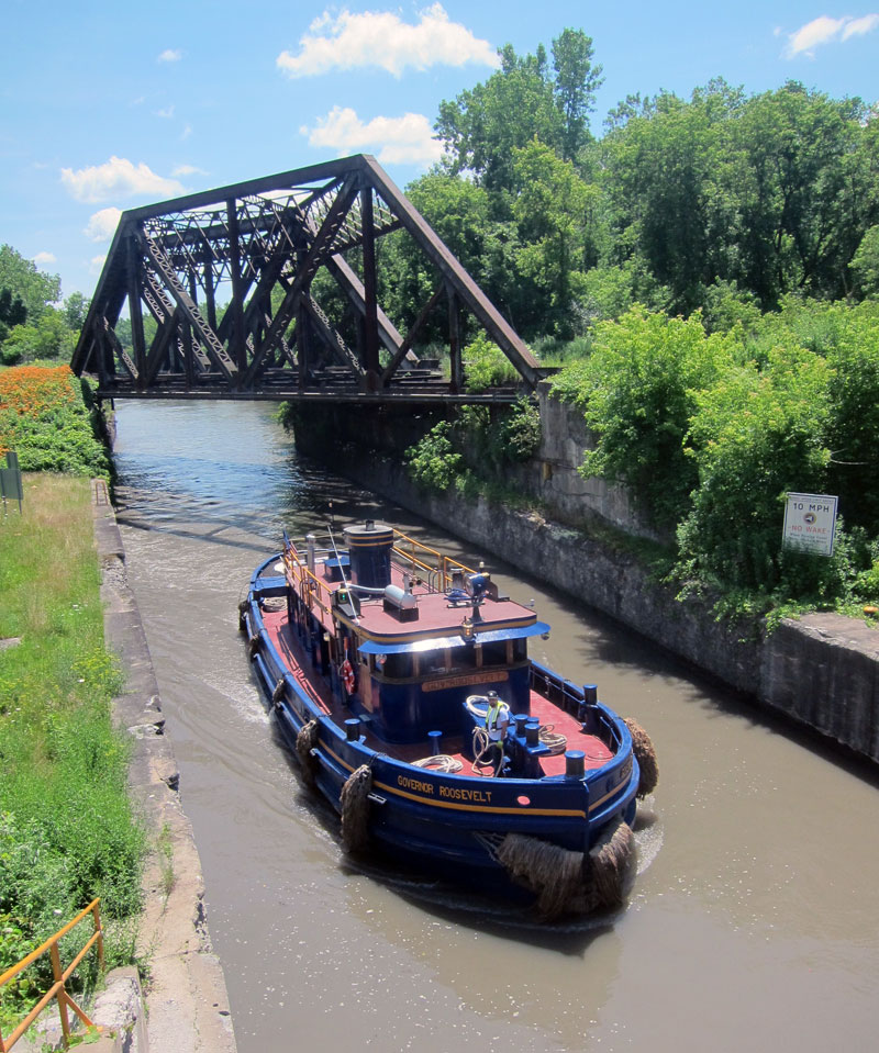 but this was a canal adventure trip, so it was back to find Lock 19. Again, Ray’s perfect timing as the Tug – Governor Roosevelt (circa 1928) – was just about to lock through.