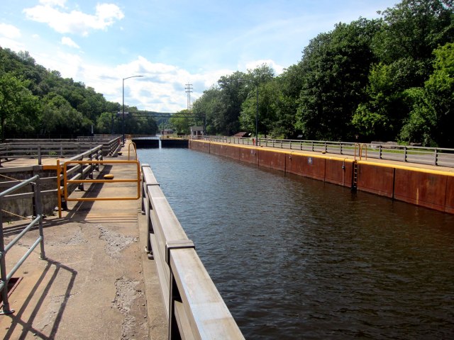 Swinging back into Little Falls, here is Lock 17. With a lift height of 40.5 feet it was once the highest single lift lock in the world (think one on the St. Lawrence Seaway is now higher). It is hard to get an image of this lock.