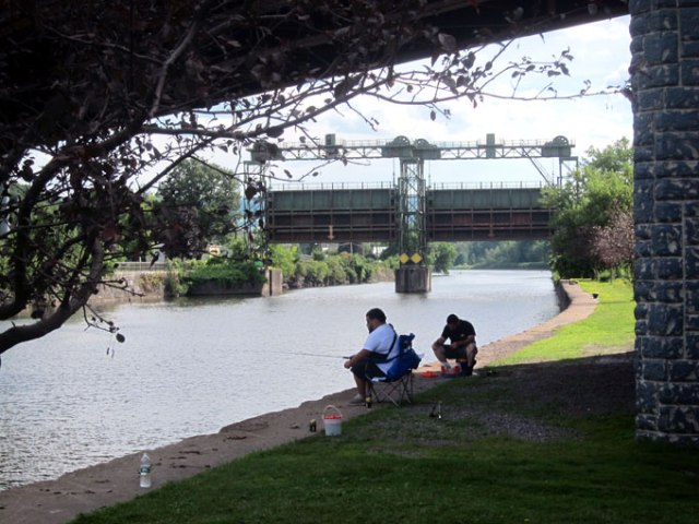 and, looking west is Guard Gate 4 in Little Falls with some evening fishermen.