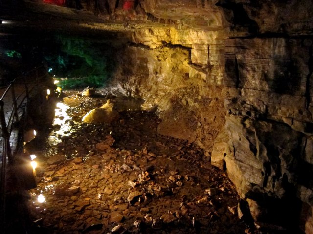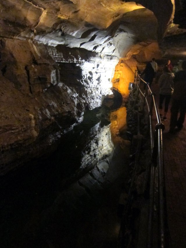 That is Mr. Howe, recounting how (I could not resist) he discovered the cave. I have advised our local veterinary to educate everyone to carefully listen to bovines. In May 1842, Howe was looking for his cattle one hot day. He found them up on a hill huddled around some bushes. As he approached he felt a blast of cool refreshing air. Pushing the bushes back he discovered an opening into the ground. He soon entered with the owner of the land. They made many explorations deep underground, and in February 1843, Howe bought the land for $100 – soon making improvements to give tours.