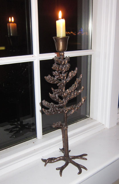 The holder below really got me started. My first Road Scholar trip after loosing Cathy was experiencing the The Vanderbilts’ Great Camp Sagamore. That was before I started this travel blog. These bronze candleholders where on each table in the dining area, and I had to have them. About $100 each in the gift shop – I have two, one in each of the north big windows in the kitchen area. But, the memories — and the start of a conscious quest.