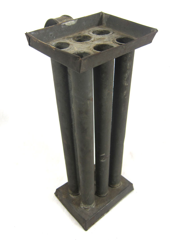 CANDLE MOLD – this specific six candle mold could have started this. When visiting my paternal grandmother I would go up in the attic and explore. Looking at this mold brought me back and back up those steep stairs in the old farmhouse. When she died in 1962, this became mine. Made from sheet tin.