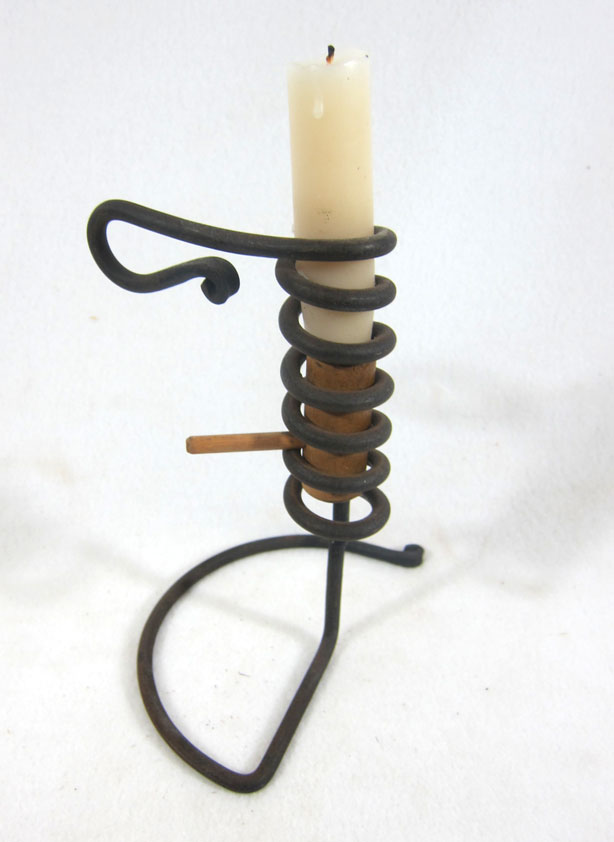 COURTING CANDLE – This was upstairs two years ago, I forgot about it. During a Red Lion Inn stay years ago I was in a remote New York village antique shop. Curious about this, of course, I asked. The lady told me the name. Used in colonial times, and into the early 1800s, a concerned father could lengthen or shorten the time a suitor spent visiting his daughter by adjusting the height of the candle. Once burned down to the top ring – Good Night.
