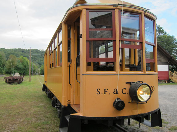 factory, etc.) is where it is. The trolley line began in 1896 to move freight and people to Shelburne Falls, and to connect with the railroad in Buckland. There was even a trolley picnic grounds built for Sunday amusements. The property is now the transfer station – I have to re-explore the area obviously. I encourage you to visit, and for some history click this link, and enjoy. And, to win another drink at the bar, in May 1812, it was in Colrain that the first American flag was ever flown