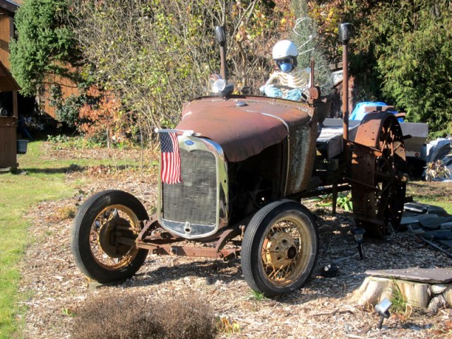 and, next I found this 1930 Model A Ford tractor conversion. The driver was wearing appropriate COVID protective gear. Any idea why I travel back roads?