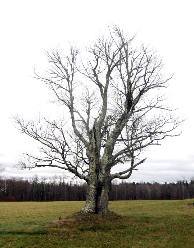 Returning, we walked around outside, but first marveled at the front entranceway stepping stones. Not something easily moved, especially over 200 years ago – but they were smarter then. Surrounded by fields on both sides of the dirt road, even in the light rain this tree speaks to you.