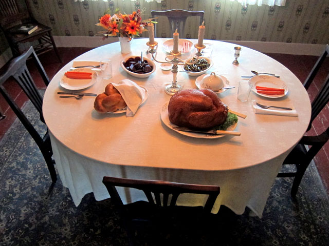 Also last year, 2019, I experienced “A NEW ENGLAND THANKSGIVING” at Old Sturbridge Village on 19 November. All around the village preparations were being made from practicing shooting for a bird, to preparations on the hearth. Below is the table at the hearth in the kitchen el of the Freeman Farm. Do click the link above to retour that afternoon with me.