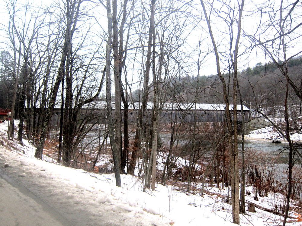 You have heard me say that a drive is different each time you take it, well a different season makes bigger differences. With leaves on the trees I could never share with you this southerly looking view of Vermont’s longest covered bridge across the West River.